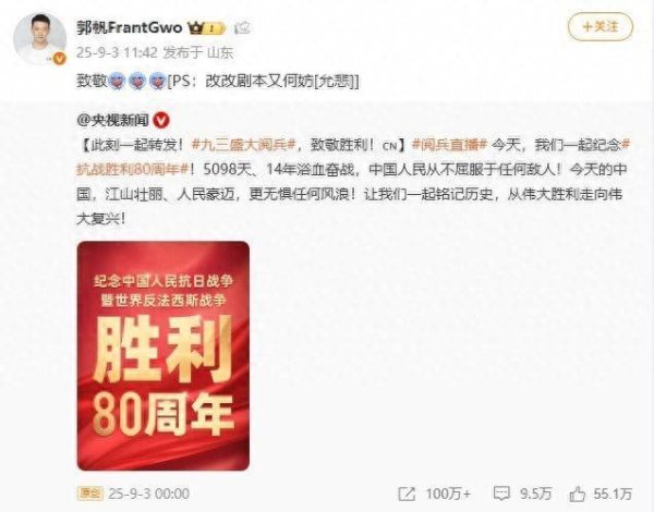 在九三校阅上开yun体育网,稠密科技含量爆表的装备接连亮相,网友纷纷喊话郭帆《流浪地球3》需要改脚本,联系话题登上微博热搜。随后郭帆微博发文称:“致意![PS:改改脚本又何妨]。” 导演郭帆在搪塞平台上发文泄漏我方本日的内心写真,他晒出七个神采包,从看到九三汜博校阅时的首肯吹法螺,到看完后需要修改《流浪地球》脚本时的发愁啜泣,激勉网友热议!不少网友捉弄他是纯预言家,笑侃他的科幻片造成了记录片。 《流浪地球》官方账号也在郭帆驳倒区里催经过:“球爸,内个,咱,咱合手紧加班吧。” 《流浪地球3》定档
