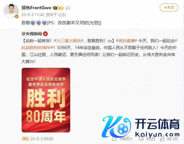 在九三校阅上开yun体育网,稠密科技含量爆表的装备接连亮相,网友纷纷喊话郭帆《流浪地球3》需要改脚本,联系话题登上微博热搜。随后郭帆微博发文称:“致意![PS:改改脚本又何妨]。”
