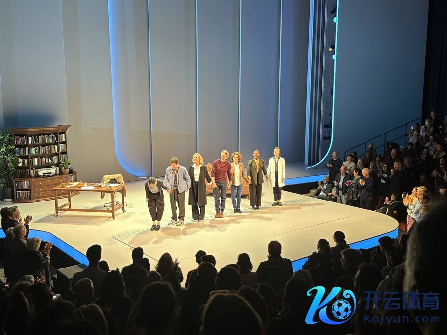 值得一提的是,这出戏的舞台缱绻格调,是基于推行主义戏剧的视角,心思诊所的办公桌及床位,裁剪部使命环境和整墙的书架,家里客厅置放的三东谈主沙发,室外公园里绿荫下的长椅等,一个个推行生存场景为演员提供了真实果然的演出空间。令东谈主咋舌的是,场景切换之间台上见不到一位换景的使命主谈主员,与此变成对比的是,舞台的升降推拉运行自由,纵深变换幻不可测,一个个场景节拍不差分秒地推移至不雅众目前。还有凭证内容变换、在舞台傍边高下齐布满天幕投影的AI生成翰墨与穿插其中的图像……这些齐让不雅众头昏脑胀,仿佛跻身于现代演义生成的迷局之中,概况千里稳又不不现代气味。舞好意思的升降、推拉也好,AI生成的字母也好,齐绝不滋扰演员演出的意图而自成一体。为此,我在看戏的流程中,心里一直为这出戏的舞好意思讴颂不已。