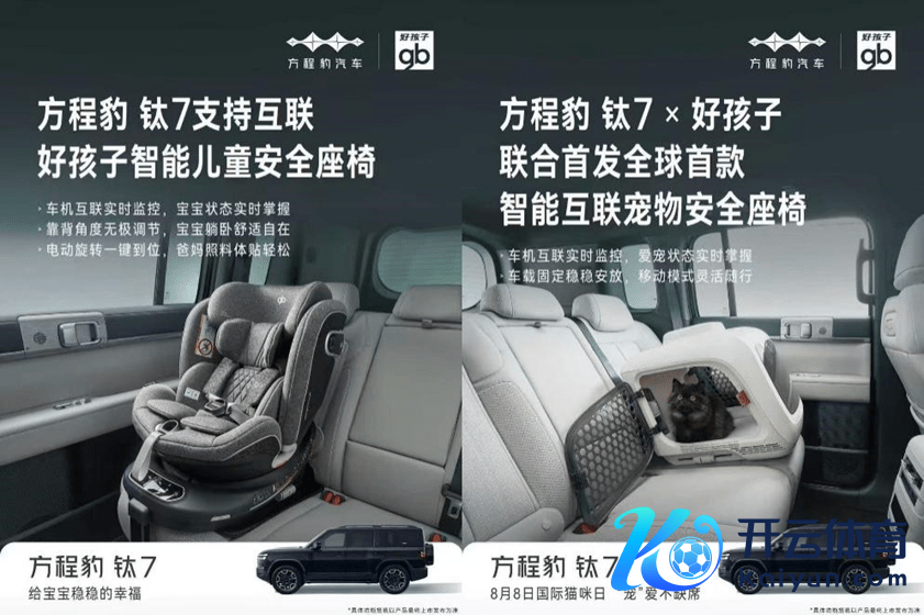 值得一提的是,钛7近日又公布了首发首搭的比亚迪新一代灵敏生态,并于8日本日还官宣了,方程豹品牌与gb好孩子汇集首发的钛7灵敏生态居品:智能儿童安全座椅、大师首款智能互联宠物安全座椅,让座舱体验再升级,小孩子与毛孩子皆一宠到底,展望后续钛7将会有更多的座舱黑科技发布。