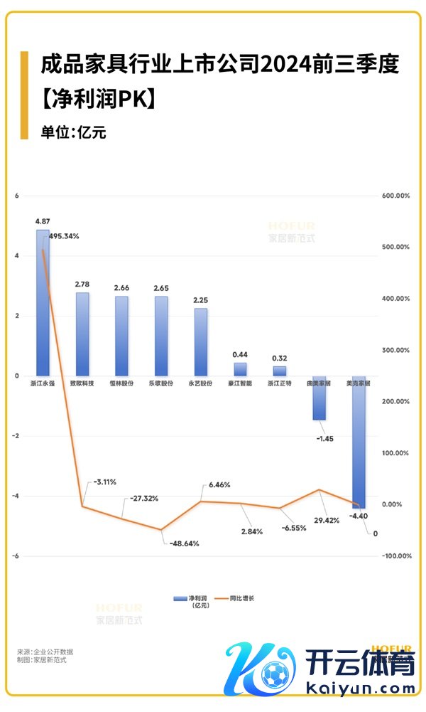 在9家上市公司中,尽管浙江永强、致欧科技、恒林股份、乐歌股份、永艺股份、豪江智能、浙江正特7家净利润竣事正收益,但同比增幅情况却互异悬殊。