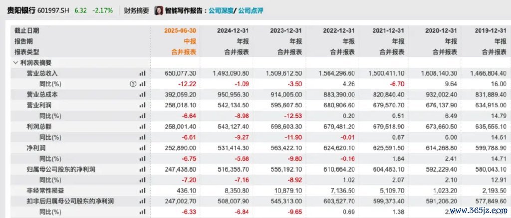 开端:凤凰网财经开云体育(中国)官方网站 凤凰网财经讯 8月26日,贵阳银行发布半年报,营业收入、归母净利润双降。同期,净息差、净利差、总钞票收益率等盈利才智磋磨也全线下跌,不良率却出现上升。三项成本饱和率磋磨固然高于监管条目,但较客岁同期,也出现了不同进度的下滑。 据贵阳银行半年报自满,限度2025年6月末,该行钞票总数7415.36亿元,较年头加多358.67亿元,增长5.08%,赓续保执贵州省第一大法东谈主金融机构地位。 在总钞票保执稳步增长的同期,贵阳银行的各项运筹帷幄磋磨却阻抑乐不雅