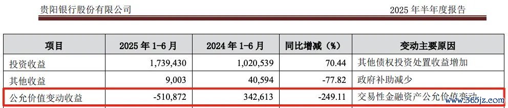 如贵阳银行我方在中报中所说,公允价值变动是该行功绩下跌的另一主要原因。上半年,贵阳银行的公允价值变动收益由盈利3.43亿元变为蚀本5.11亿元,同比暴降249.11%;而投资收益则增至17.39亿元,大涨70.44%。