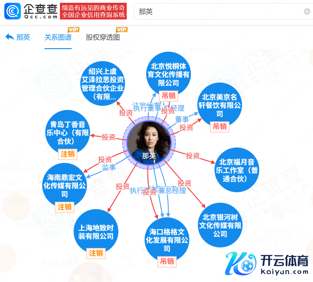 那英名下关联9家企业,其中6家曾经刊出。当今存续的企业包括北京福月音乐师作室(普通合股)、北京星河树文化传媒有限公司和绍兴上虞艾泽拉想投资管理合股企业(有限合股)。
