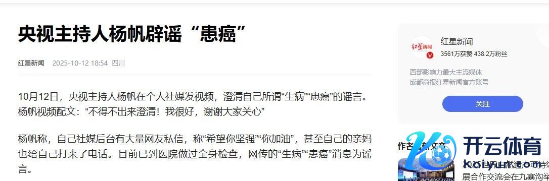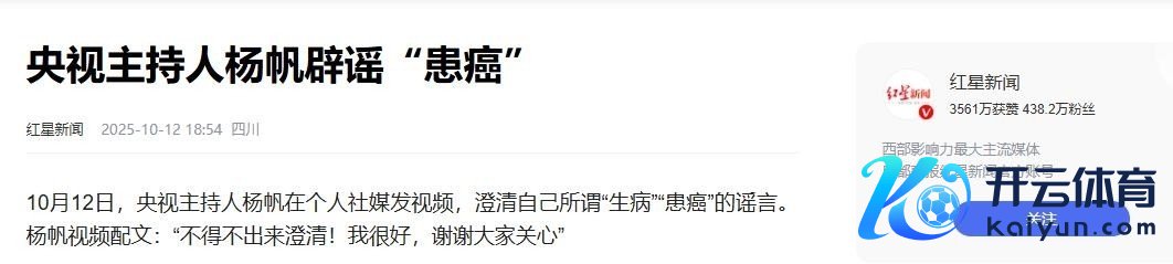 1.《央视主捏东谈主杨帆辟谣“患癌”》红星新闻2025-10-12 18:54四川