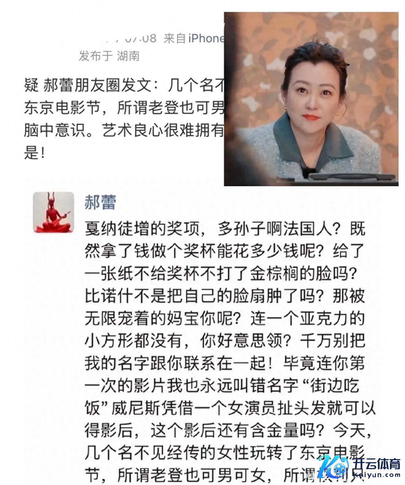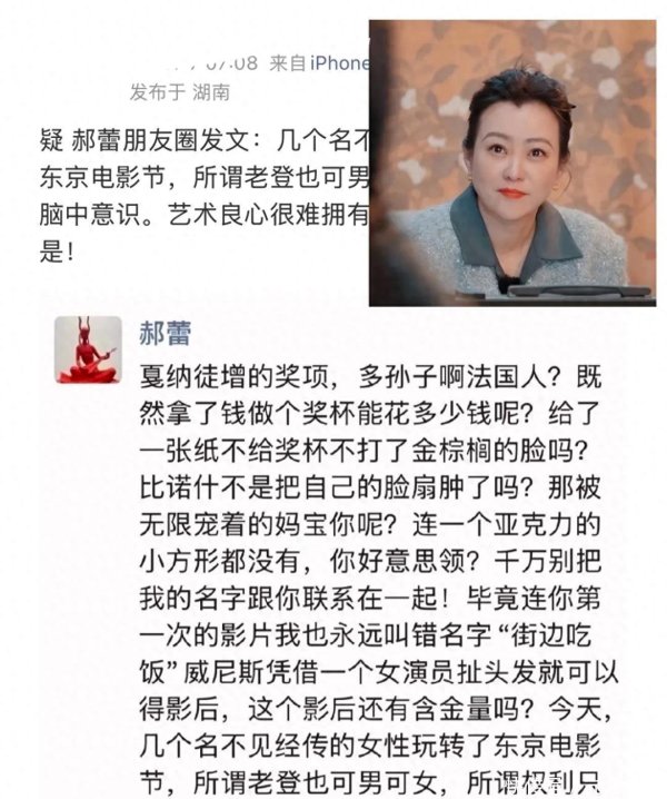 这事儿还得从一张疑似郝蕾的一又友圈截图提及——里头阴阳怪气地说什么“靠扯头发拿影后”,明眼东说念主一看就知说念在说谁。