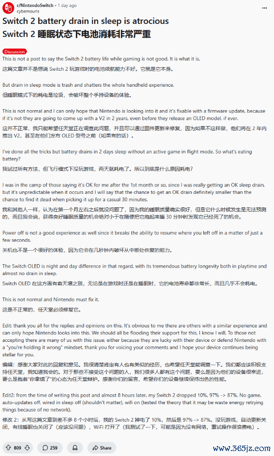 -->近日,在Reddit的Switch干系板块中开云(中国)kaiyun网页版登录入口开云体育,一则对于NS2耗电太快的帖子引起了好多玩家的究诘。据帖主cybemouris共享,他的NS2续航恶果额外之差,哪怕在睡眠花样下也一直耗电,即便在遨游花样下、不起始任何游戏,睡眠花样2天电量就被耗光,而Switch OLED的体验就好得多,不仅玩游戏时的续航智商很强,睡眠花样时也险些不掉电。