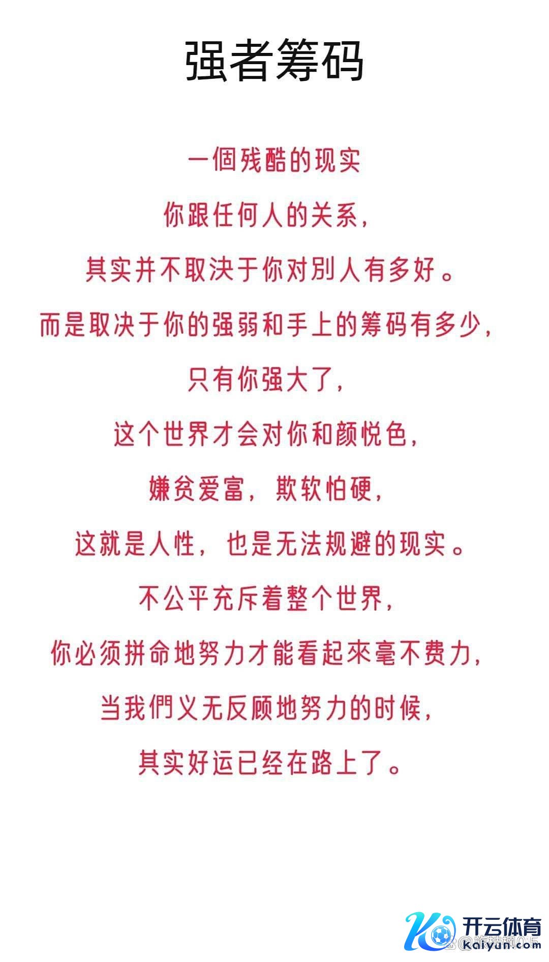 你认为,东说念主性冷暖到底是实力说了算,还是心计真能卓越贫富强弱?一又友在你凹凸时离你而去,是践诺太残忍还是该骂他们没良心?更扎心的——若是你的一又友今夜“无敌”,你会由衷替他直快开yun体育网,还是打起小算盘争资源?快来留言聊一聊东说念主际这碗汤,该靠什么调味——老铁实诚还是肌肉能量?