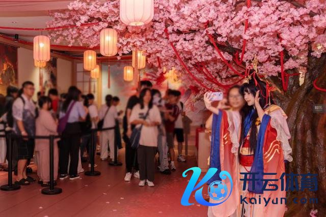 置身展馆,就像果真走进游戏里阿谁咱们最老到的、住着清朗、时常有式神造访的庭院,一株好意思艳的樱花树占据着视觉中心,几把油纸伞让我思到神乐,"缘结神"双手交持,含笑着奉上道喜,许多玩家都在此停留,排着队与她合影——我听到有玩家小声和一又友说:"这寓意真好,有种因缘开动了的嗅觉。"