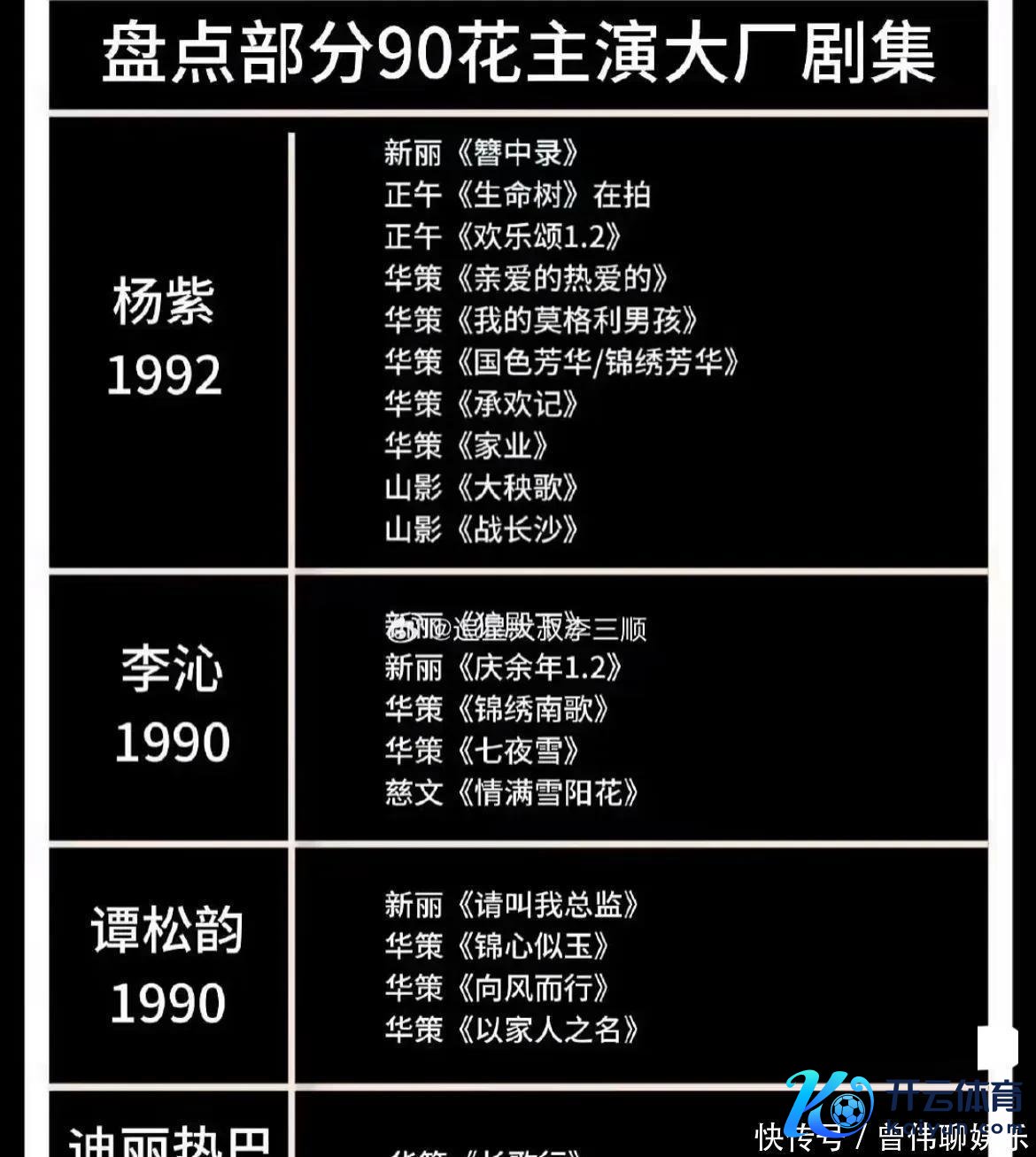其实排任何四大体育游戏app平台,最直不雅的,是看资源层次,90花资源最佳的当今是杨紫,她总共二满三平,如今手头的资源相配优质。