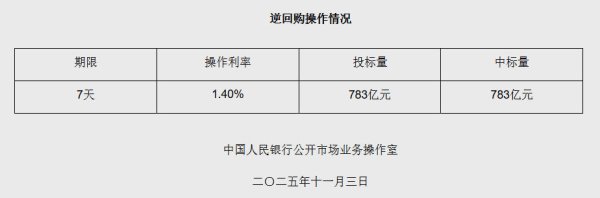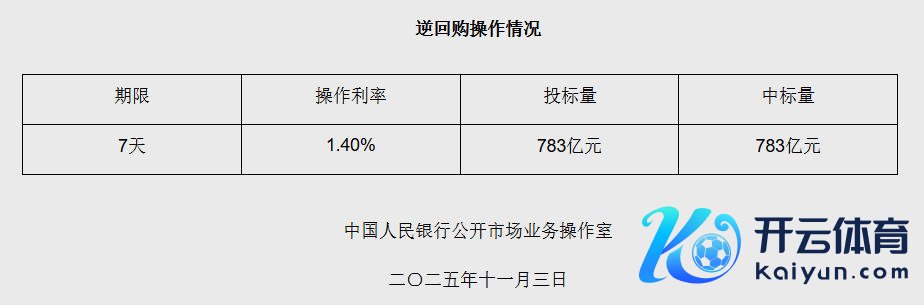 11月3日央行开展783亿元7天期逆回购操作开云体育(中国)官方网站